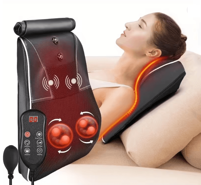 Electric Shiatsu Neck Massage Pillow With Airbag Traction Heat And Vibration b us Plug
