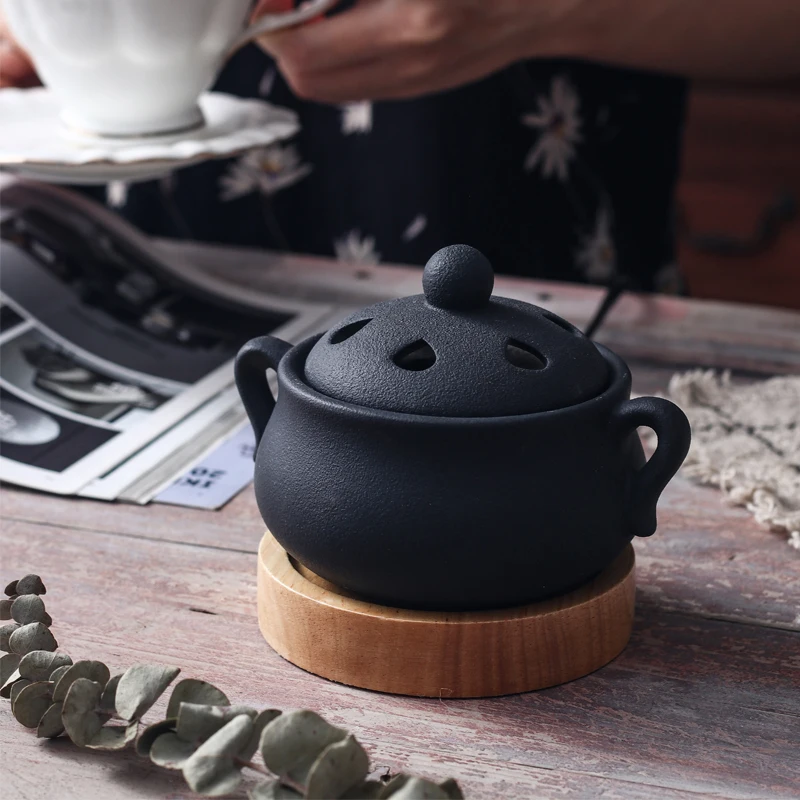 Electric Incense Burner Ceramic, Elegant Black Essential Oil Lamp, Timed Household Diffuser For Home Decor 110v With Usa Plug