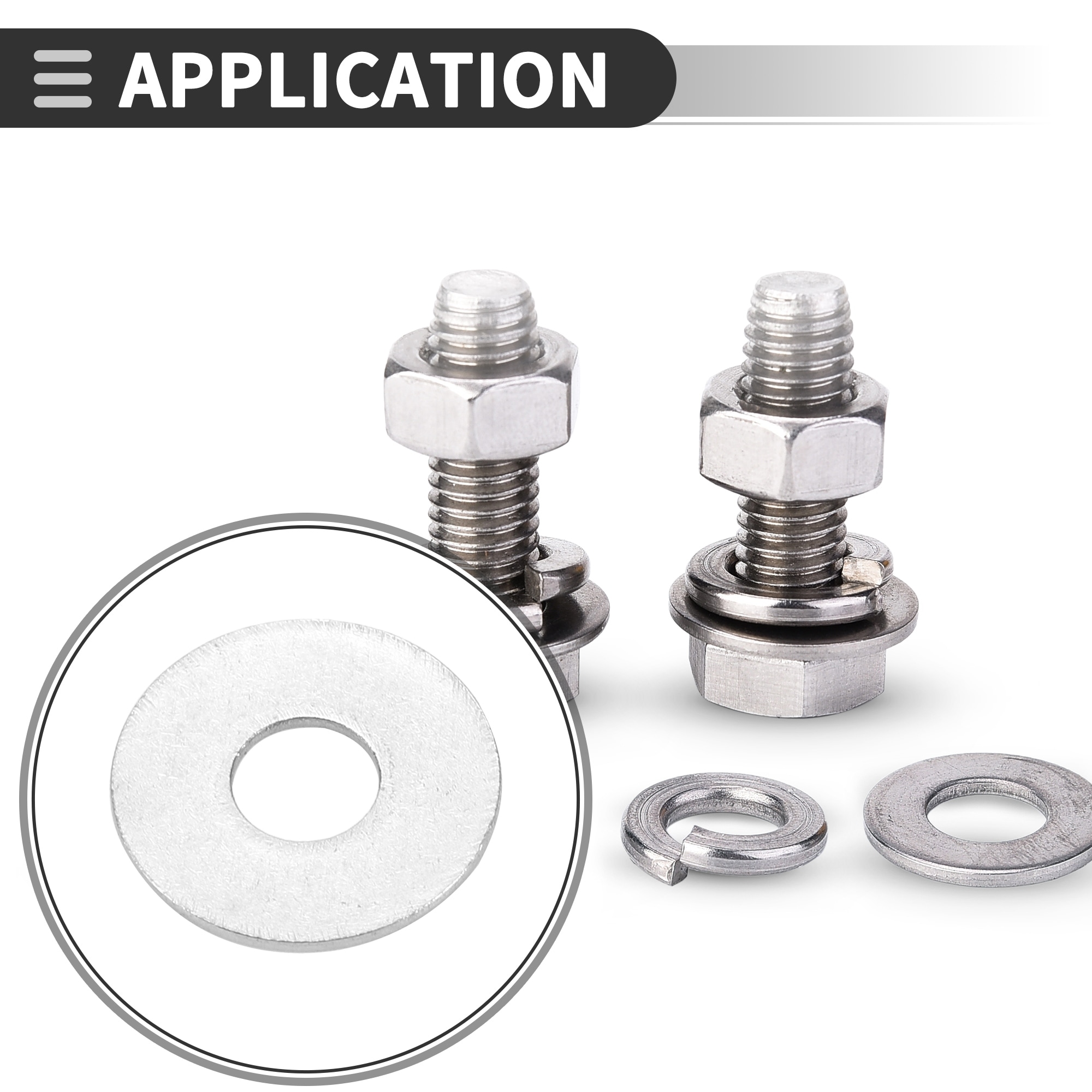 Universal Flat Washer, Durable, Stainless Steel, Silver Tone, 20 Pcs - Silver Tone