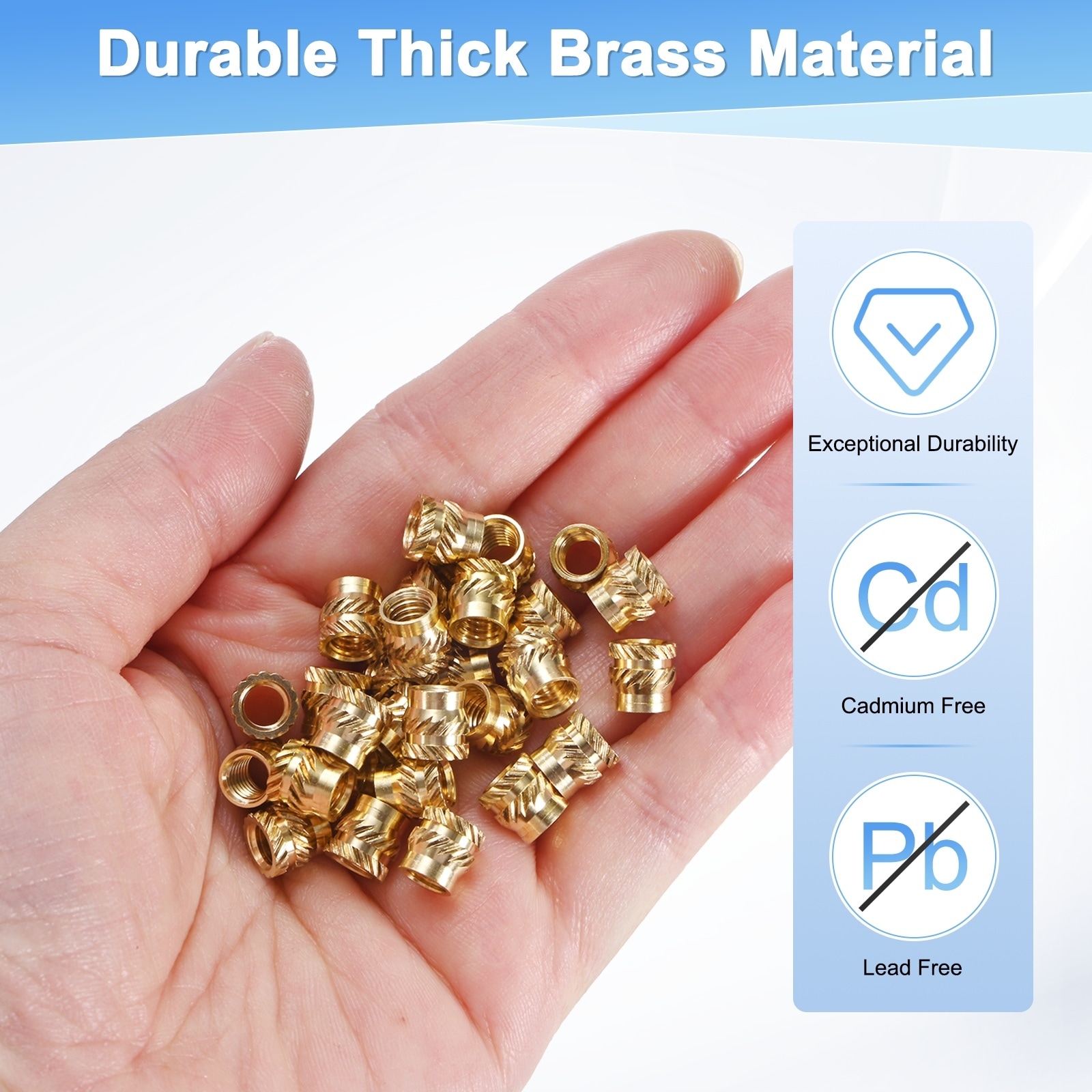 Threaded Inserts, Brass Female Knurled Metric Nuts Brass Heat Set for Plastic/DIY 3D Printing Components - Copper Color