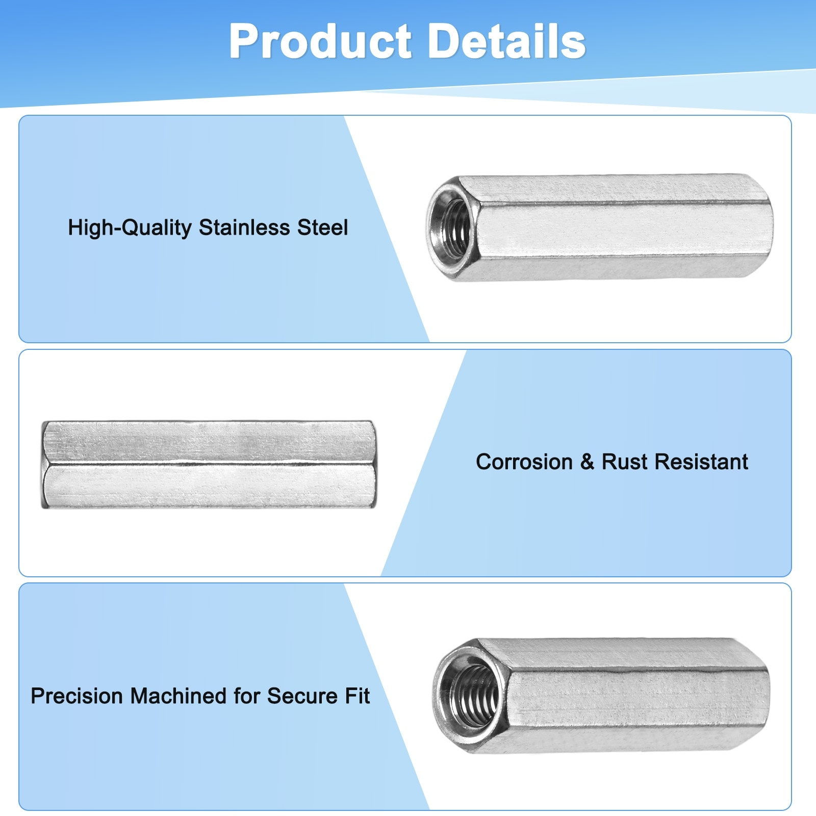 Hex Coupling Nuts, Length Stainless Steel Fully Threaded Rod Coupling Nut for Machine/Industrial, Studding Connector Fasteners