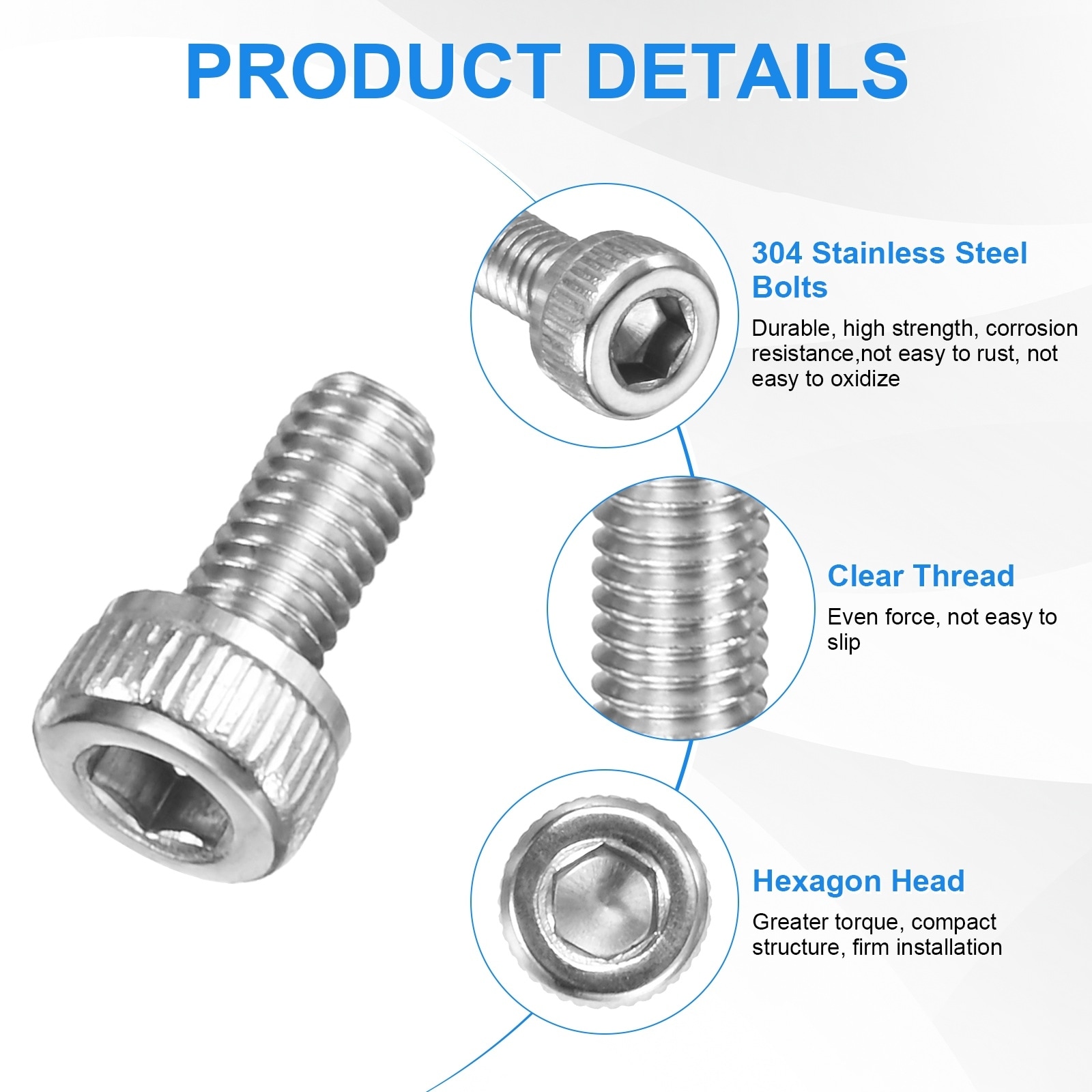 Socket Head Cap Screws, Stainless Steel Hex Machine Bolts, Allen Socket Drive Screw with Hex Wrench for Repair/DIY - Silver