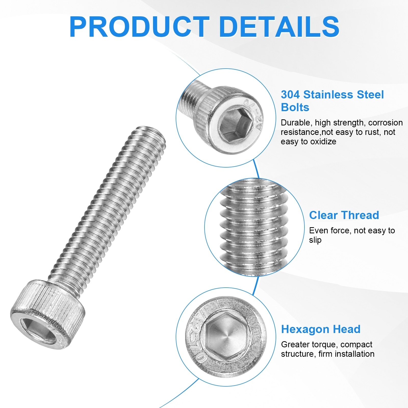 Socket Head Cap Screws, Stainless Steel Hex Machine Bolts, Allen Socket Drive Screw with Hex Wrench for Repair/DIY - Silver
