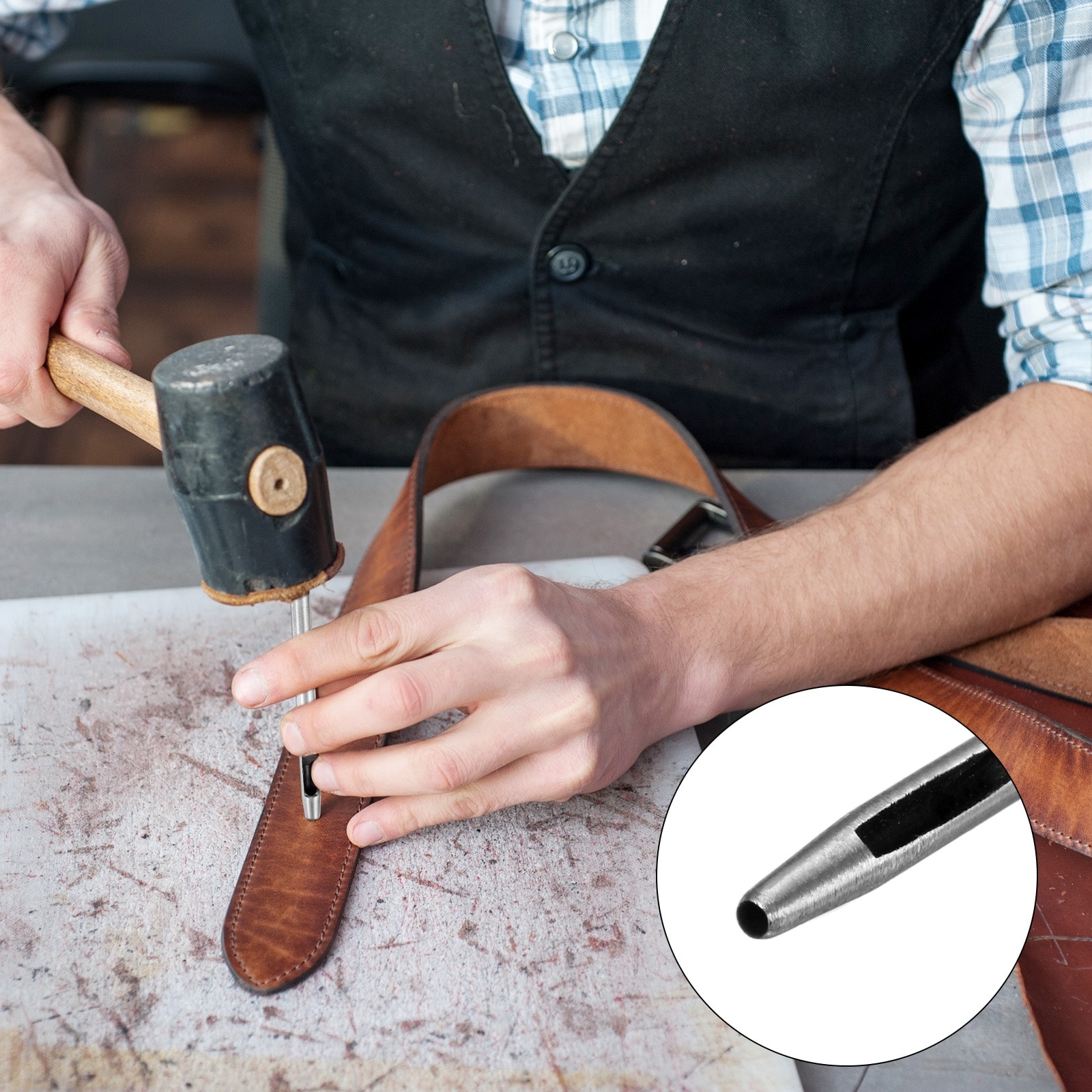 Hollow Hole Punch Tool Use for Leather Paper Plastic Belt [Silver] - Silver Tone