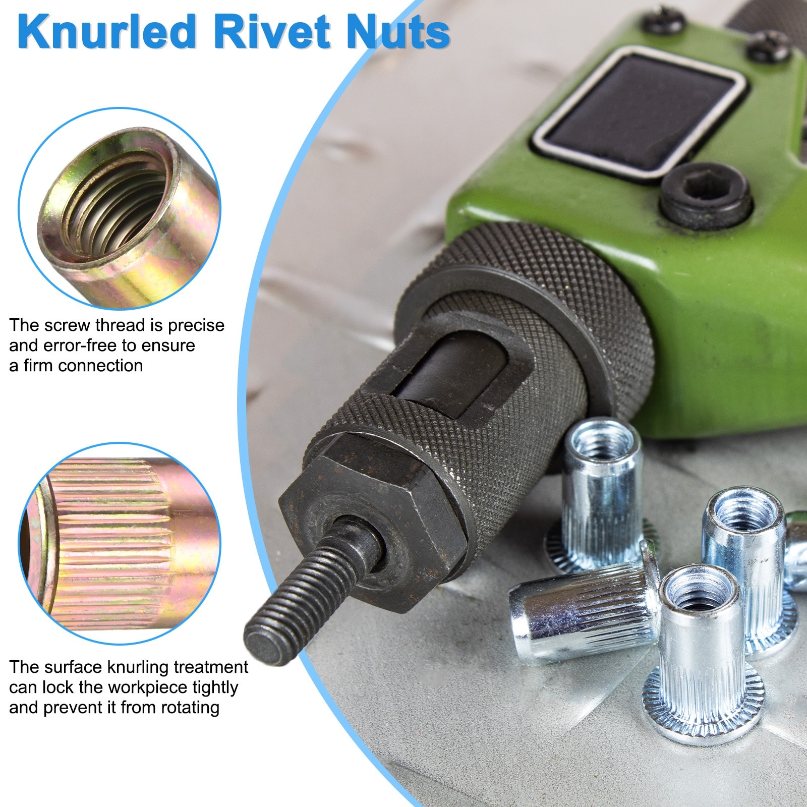 Pack Rivet Nuts, Carbon Steel Knurled Flat Head Threaded Insert Nuts for Sheet Metal/Pipe Manufacturing, Color-Plated