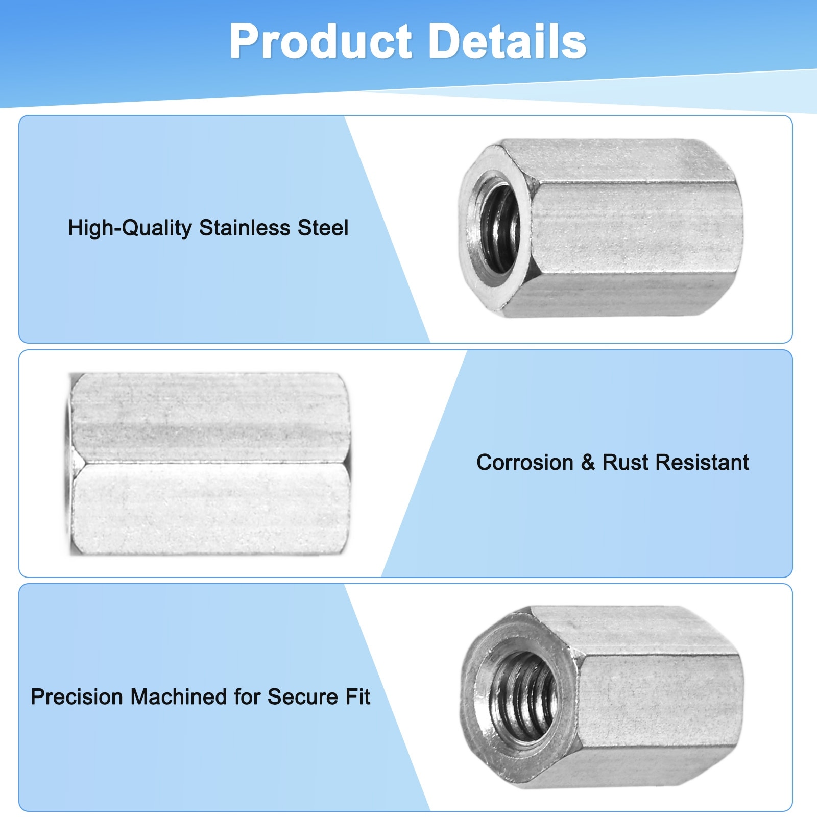 Hex Coupling Nuts, 304 Stainless Steel Fully Threaded Rod Coupling Nut, Studding Connector Fasteners for Industrial/mechanical