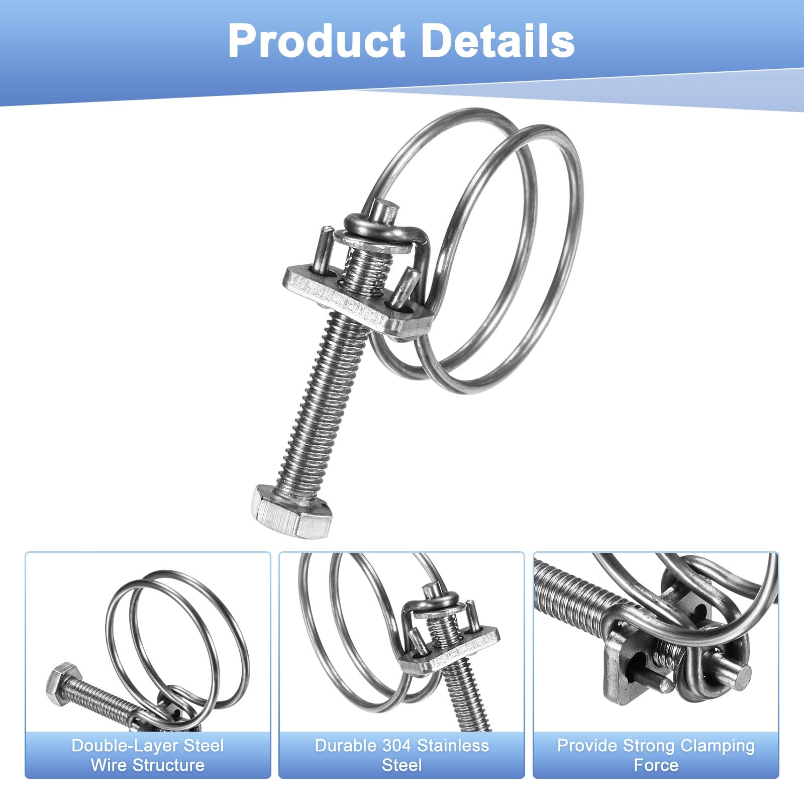 Double Wire Hose Clamp, Stainless Steel Hose Clips Pipe Tube Clamps with Bolt Adjustable for Dust Collection Hose - Silver