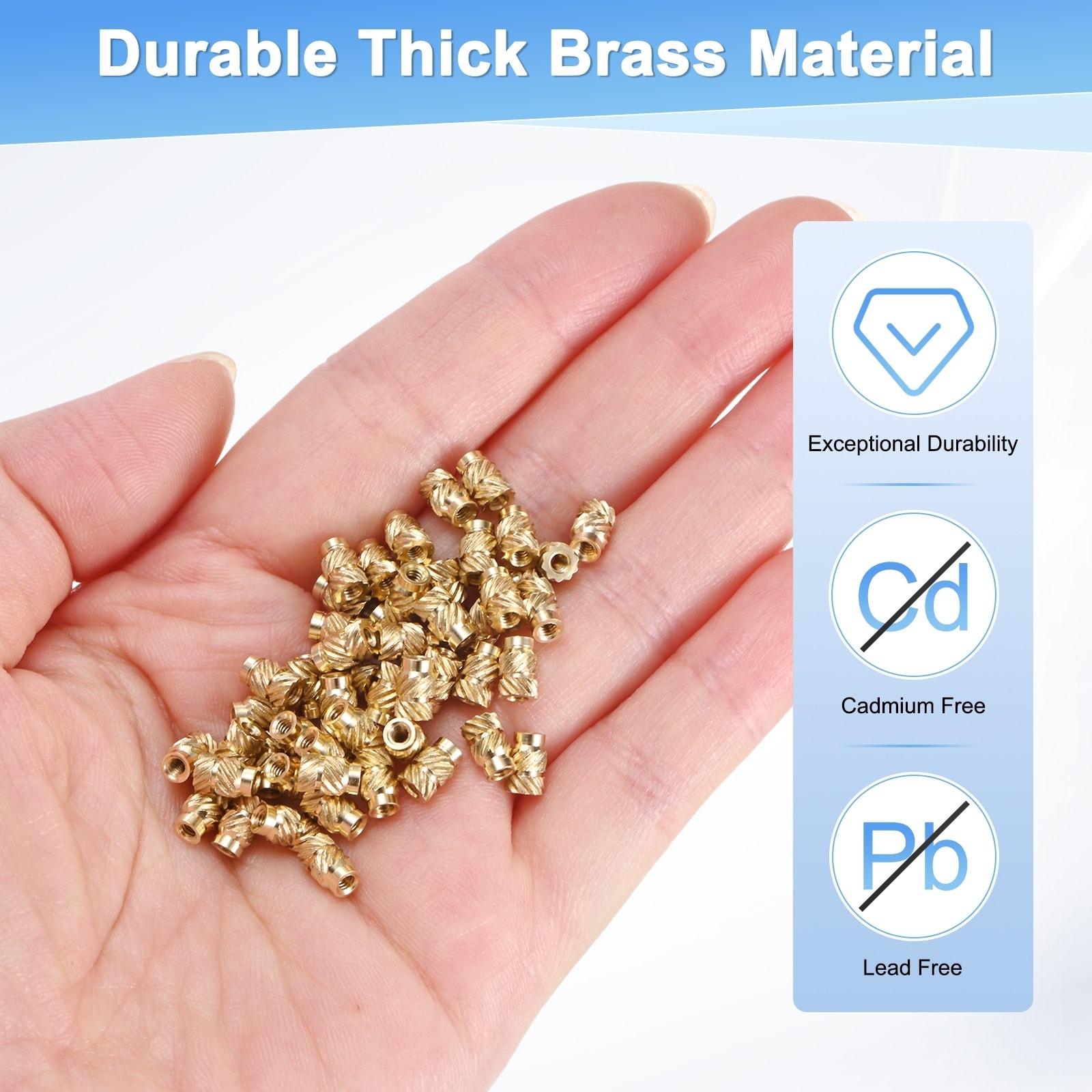 Threaded Inserts, Brass Female Knurled Metric Nuts Brass Heat Set for Plastic/DIY 3D Printing Components - Copper Color