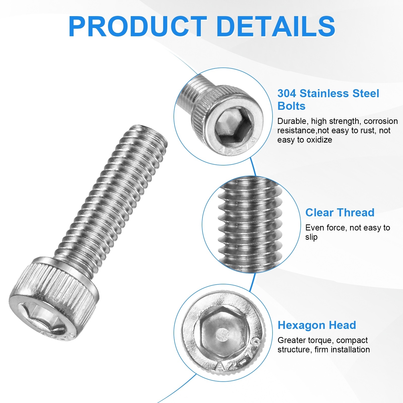 Socket Head Cap Screws, Stainless Steel Hex Machine Bolts, Allen Socket Drive Screw with Hex Wrench for Repair/DIY - Silver