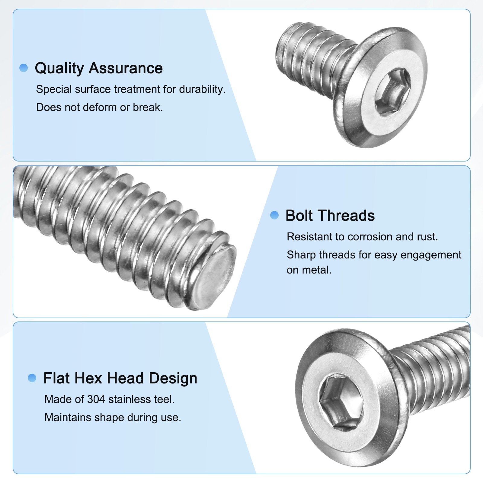 Flat Head Socket Cap Screws, 304 Stainless Steel Hex Drive Fastener Kit with Hex Key - Silver