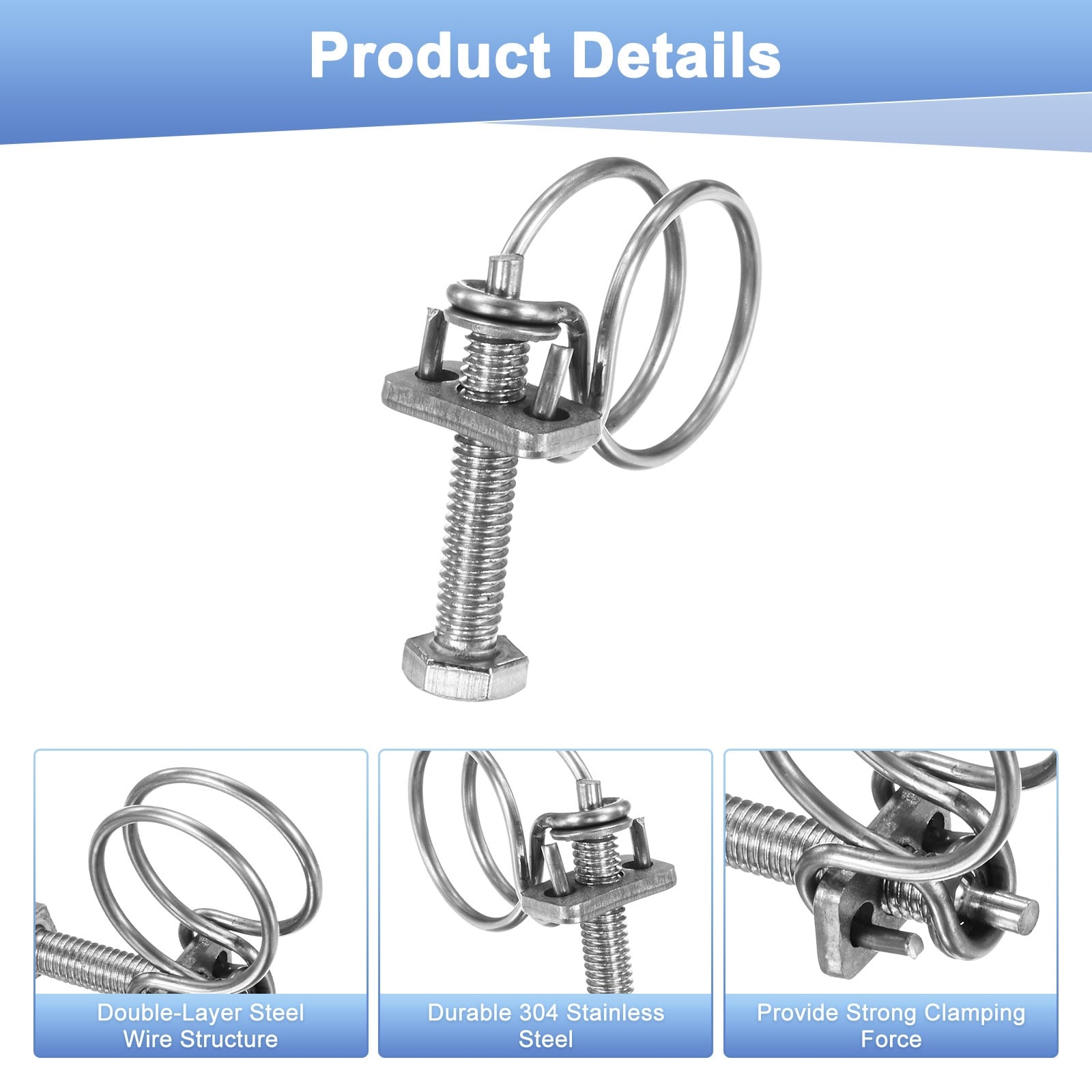 Double Wire Hose Clamp, Stainless Steel Hose Clips Pipe Tube Clamps with Bolt Adjustable for Dust Collection Hose - Silver