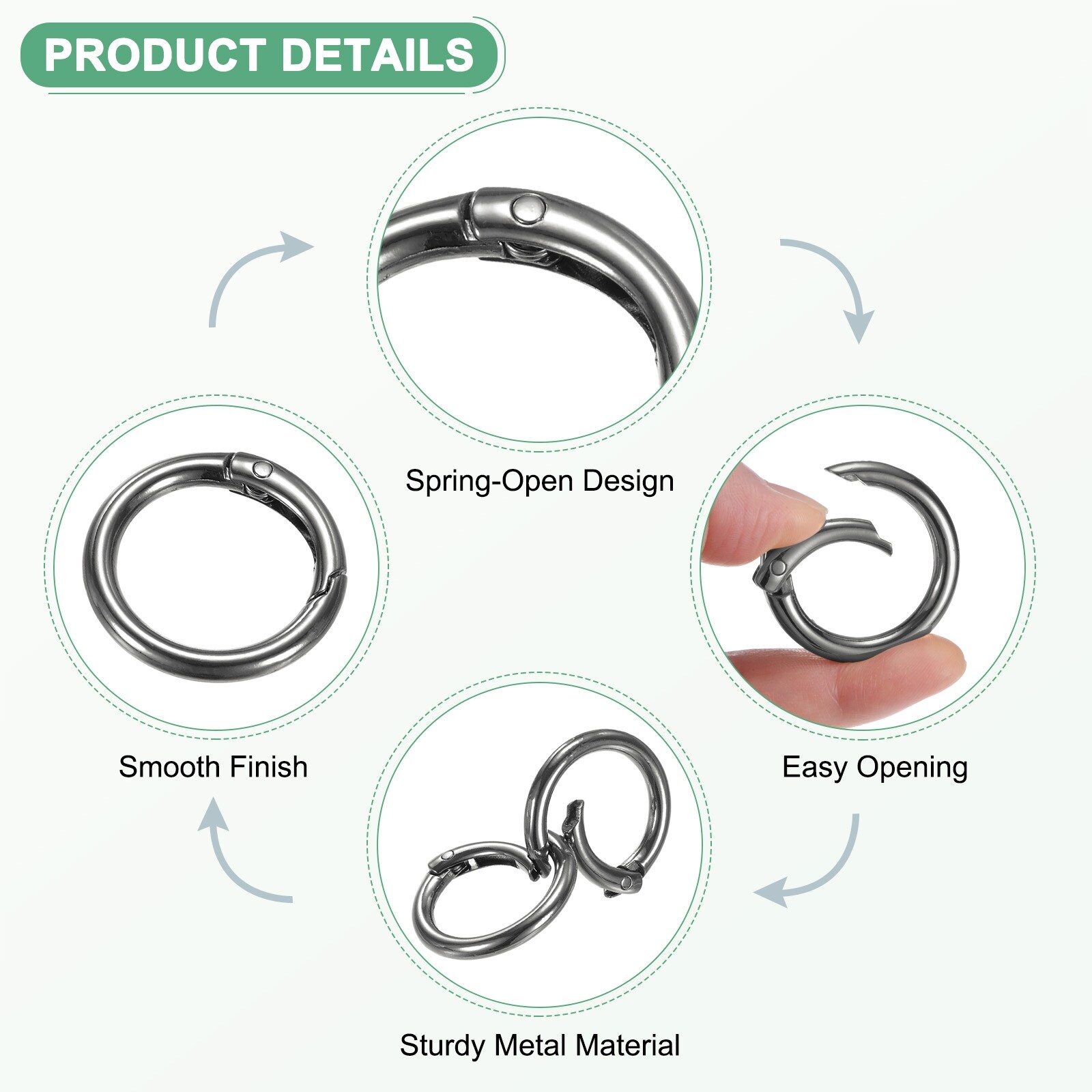 15-Pack Spring O Rings, Rustproof Alloy Round Spring Ring Clasp for Purses/DIY Crafts - Black - 1 Inch
