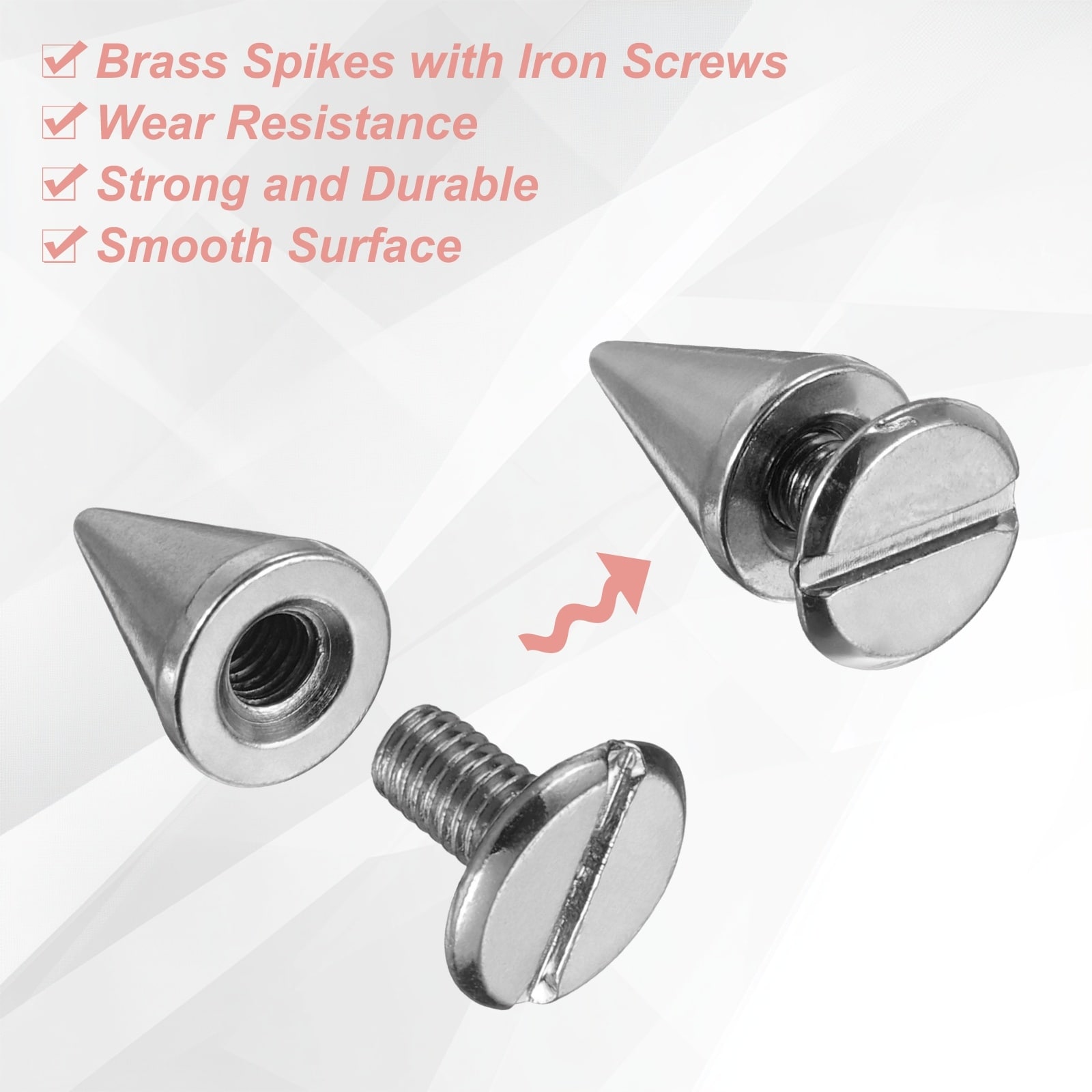 Spike Cone Studs Riveted Brass Cone Spikes Punk Style Rapid Rivet for Garments/Shoes/Bags/DIY Leather Craft - 10x7 mm