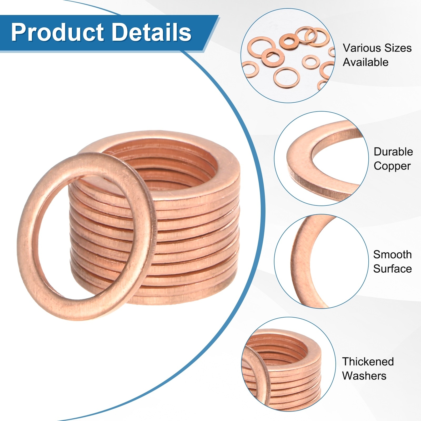 Copper Washers, Copper Sealing Washers for Bolts Screws Nuts for Automotive/Machinery/Plumbing
