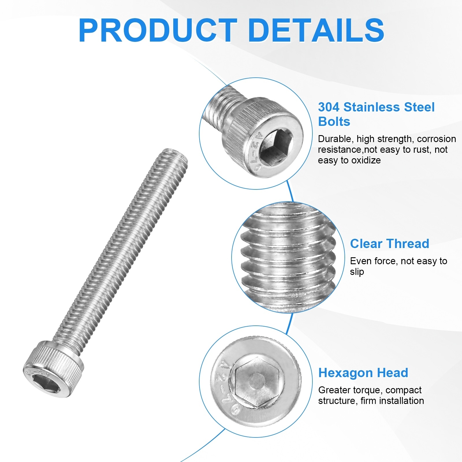 Socket Head Cap Screws, Stainless Steel Hex Machine Bolts, Allen Socket Drive Screw with Hex Wrench for Repair/DIY - Silver