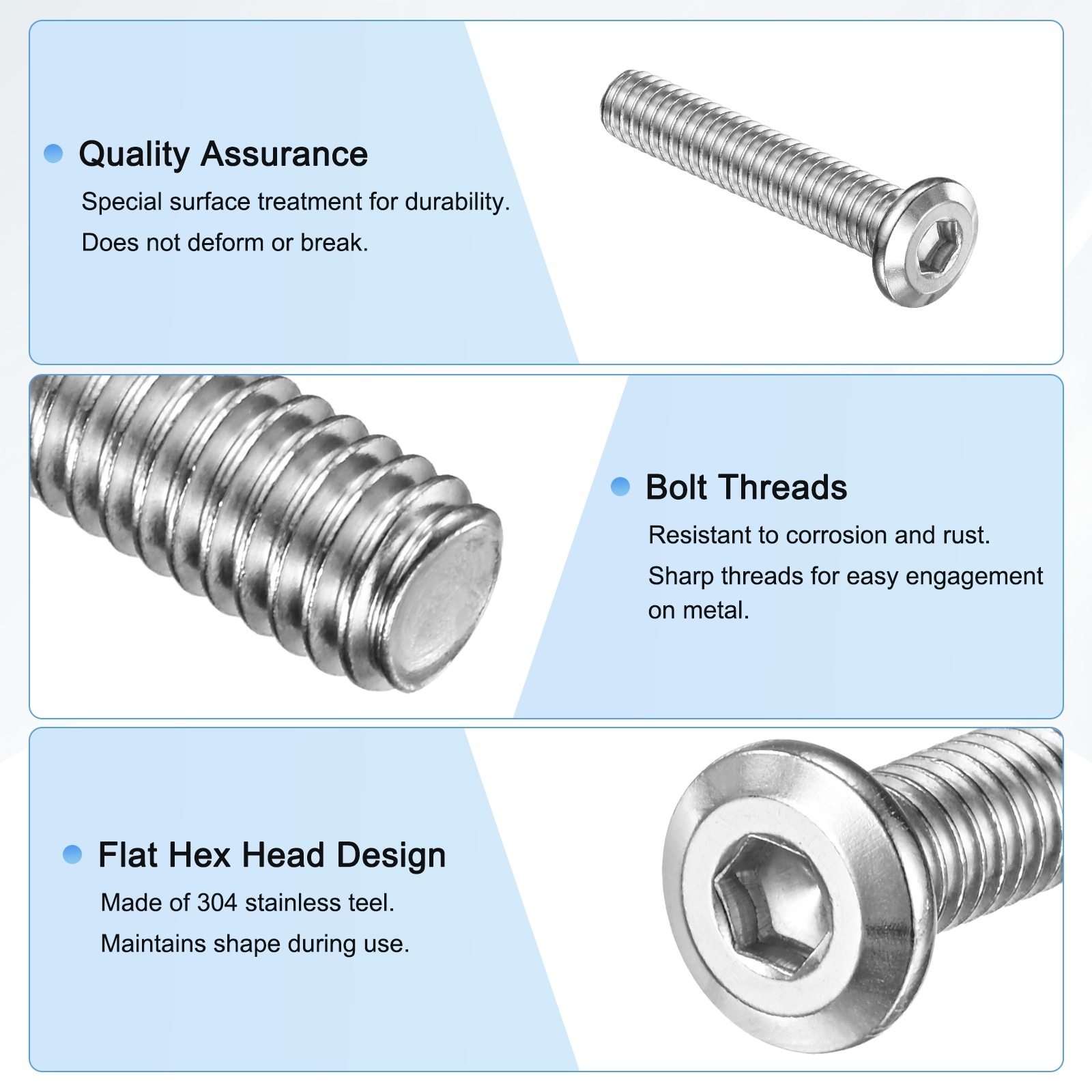 Flat Head Socket Cap Screws, 304 Stainless Steel Hex Drive Fastener Kit with Hex Key - Silver