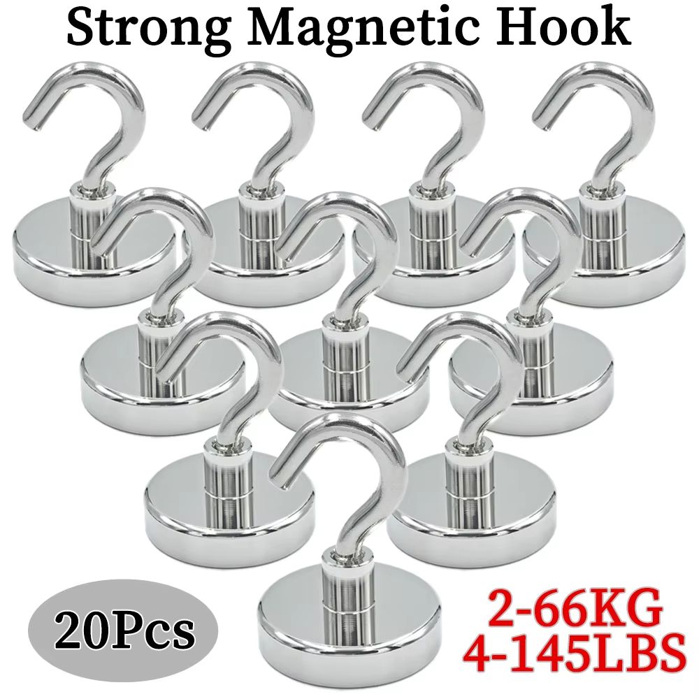 Magnetic Hooks Heavy Duty Neodymium Super Strong Hanging Solution (10 20 Pcs Set) kne48 Hold 90kg 20pcs