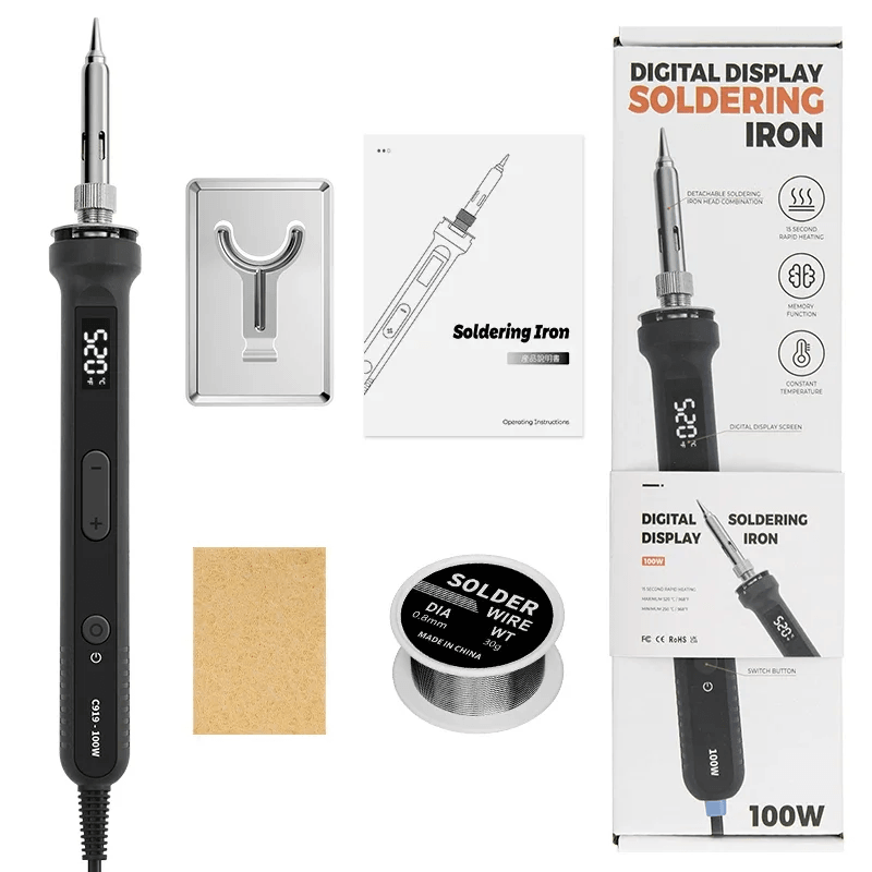 100W Digital Electric Soldering Iron Kit With LCD Temperature Control black Set 1 eu