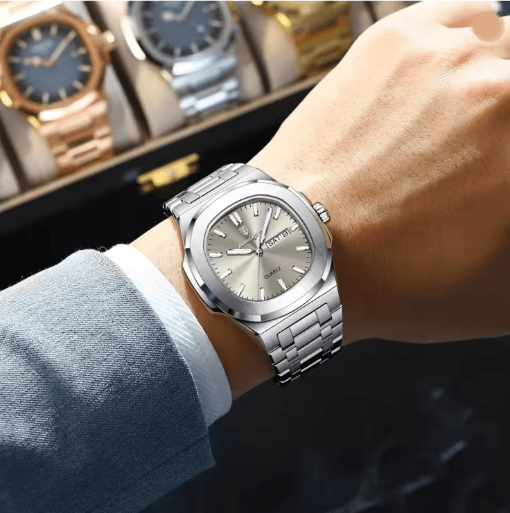 Poedagar Original Square Quartz Watch For Men silver blue