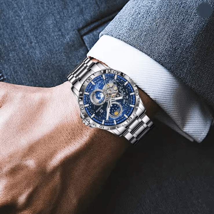 High End Design Mechanical Watch, Las Vegas Roulette Desktop Theme, Diamond Luminous Rotating Dial Men Timepiece blue 1